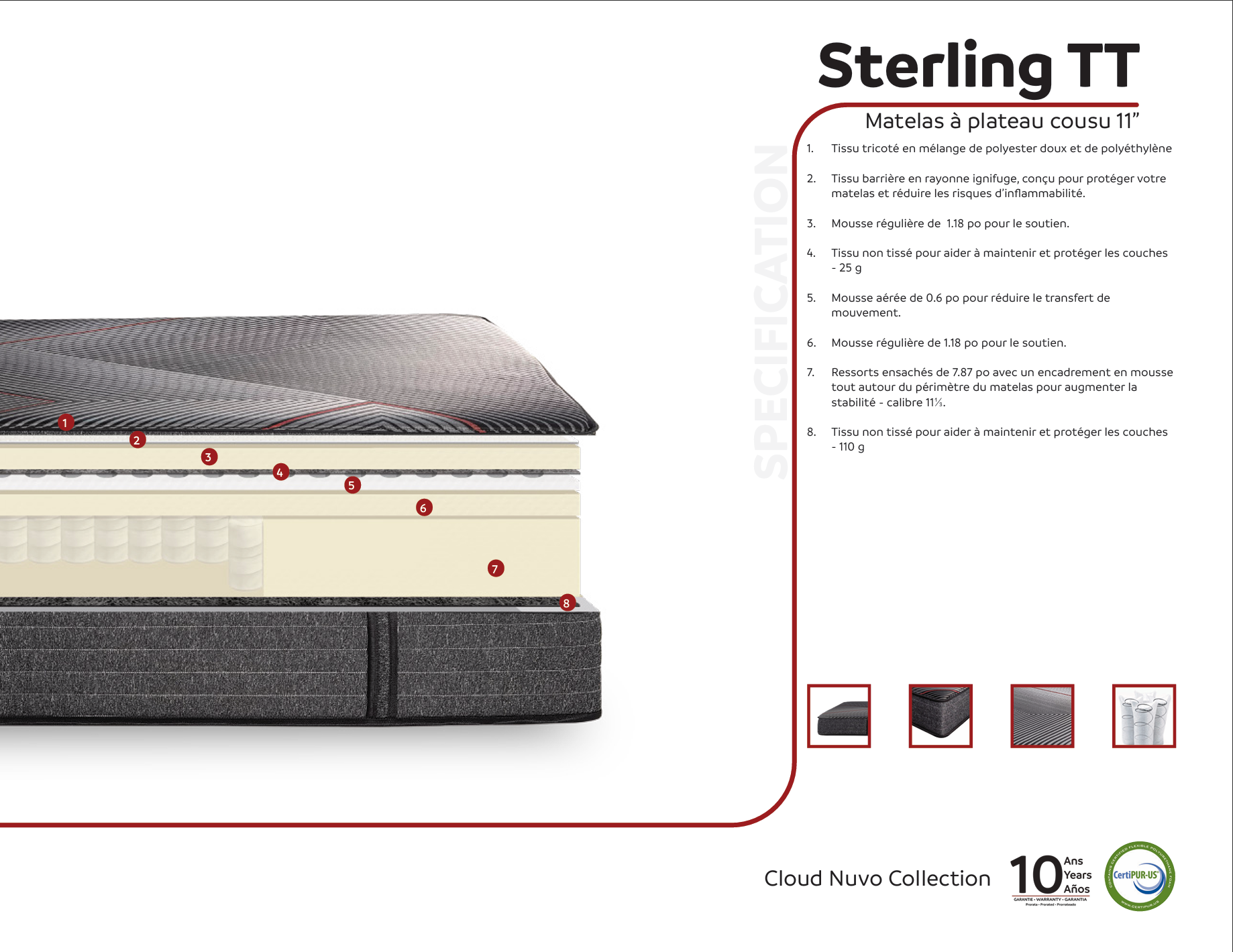 Nos matelas sont [garantie 10ans]. Certains modèles sont garantis jusqu'à 15ans. Renseignez-vous à nos représentants.
