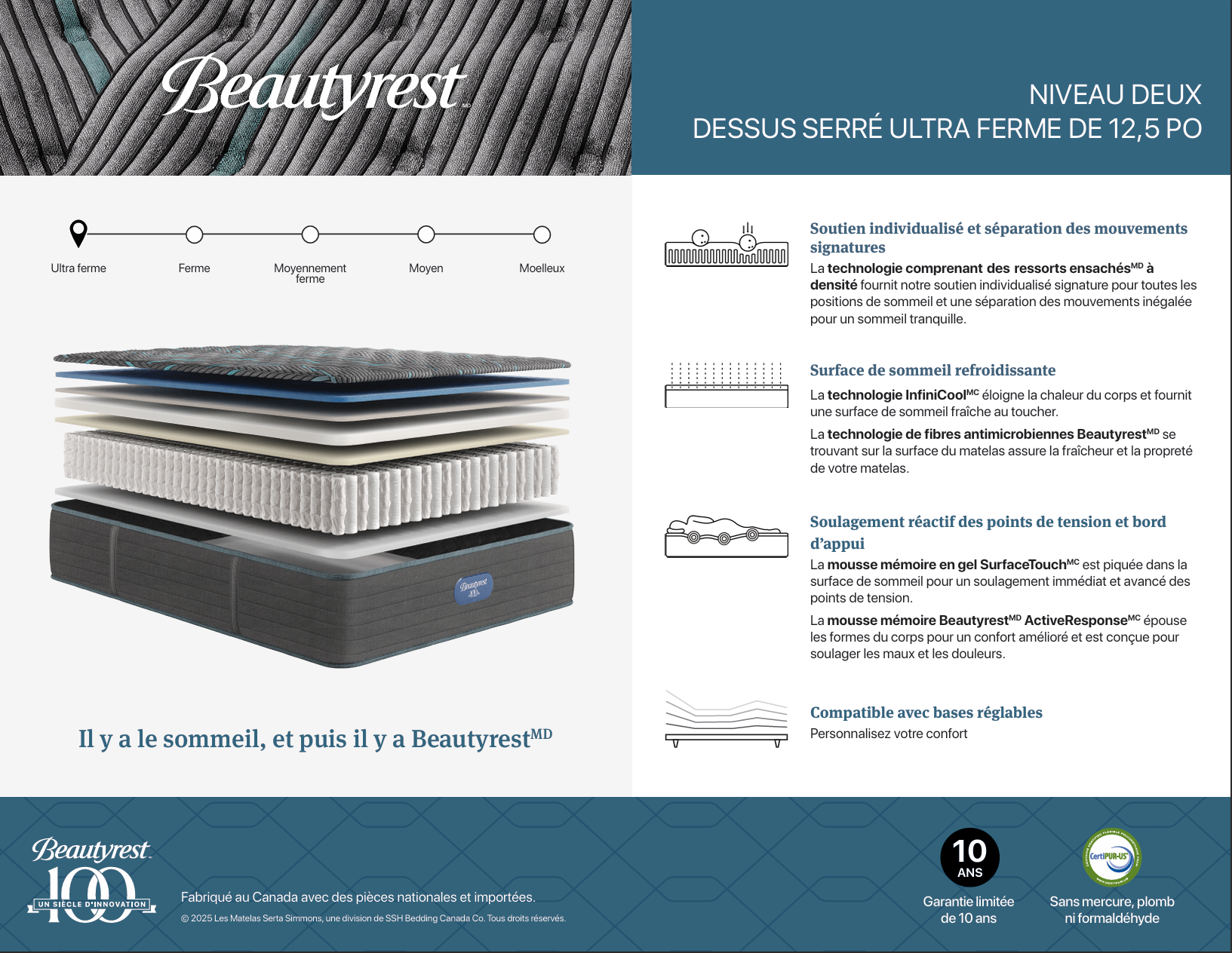 Nos matelas sont [garantie 10ans]. Certains modèles sont garantis jusqu'à 15ans. Renseignez-vous à nos représentants.