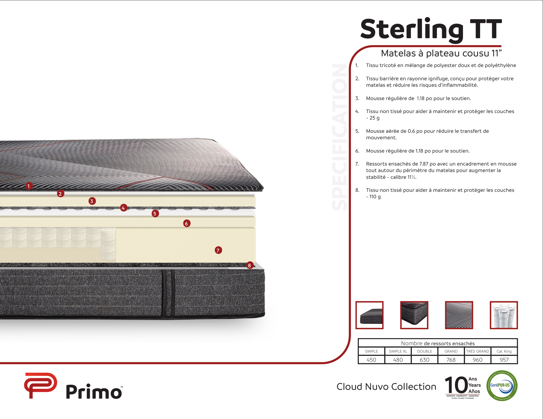 Nos matelas sont [garantie 10ans]. Certains modèles sont garantis jusqu'à 15ans. Renseignez-vous à nos représentants.